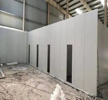 Flexible and sturdy partitions using gypsum and cement boards for offices, hotels, and commercial spaces.